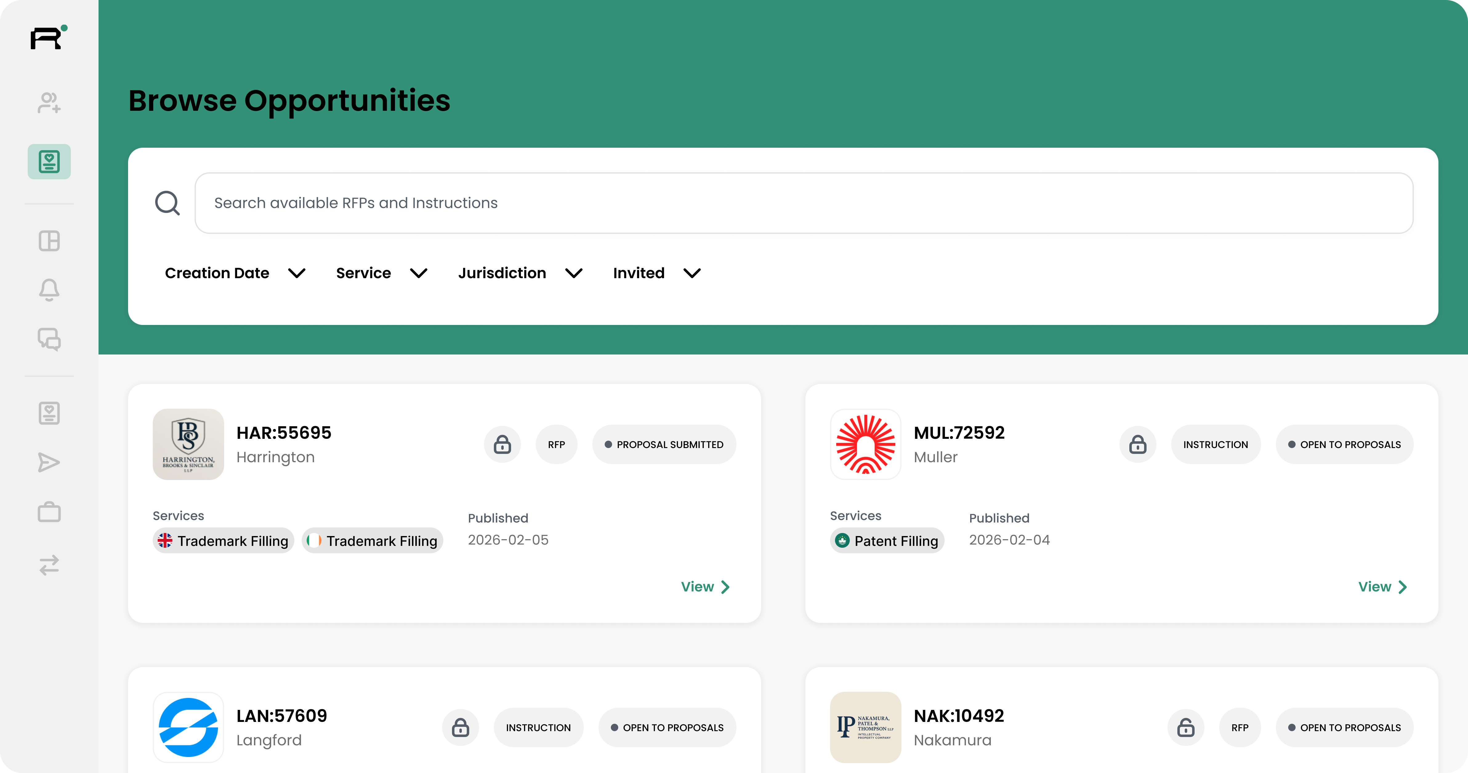 Start an RFP or send a Direct Instruction with scope, timeline, and documents. All structured from the start.